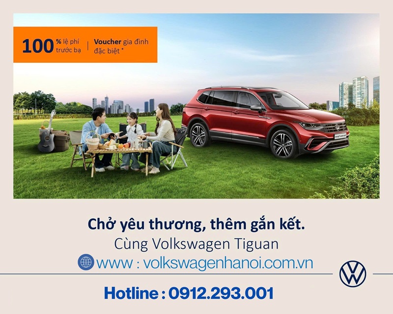- Volkswagen Hà Nội cập thông tin chương trình ưu đãi bán hàng tháng 6 với thông điệp “CHỞ YÊU THƯƠNG, THÊM GẮN KẾT” với ưu đãi đặc biệt nhân dịp Ngày Gia đình Việt Nam 28/6, tặng Voucher gia đình đặc biệt* cho khách hàng gia đình mua các dòng xe Volkswagen trong tháng 6.2025, cụ thể như sau: